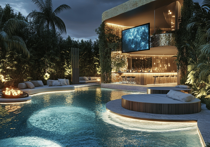 No puedes tener una piscina de lujo sin un entorno que la haga brillar. Plantas exóticas, iluminación estratégica y elementos naturales son tus aliados.