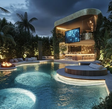 Tu piscina no debería ser solo un lugar para nadar (porque eso lo hace cualquiera). Necesitas áreas que digan: "Bienvenidos a mi oasis personal".
